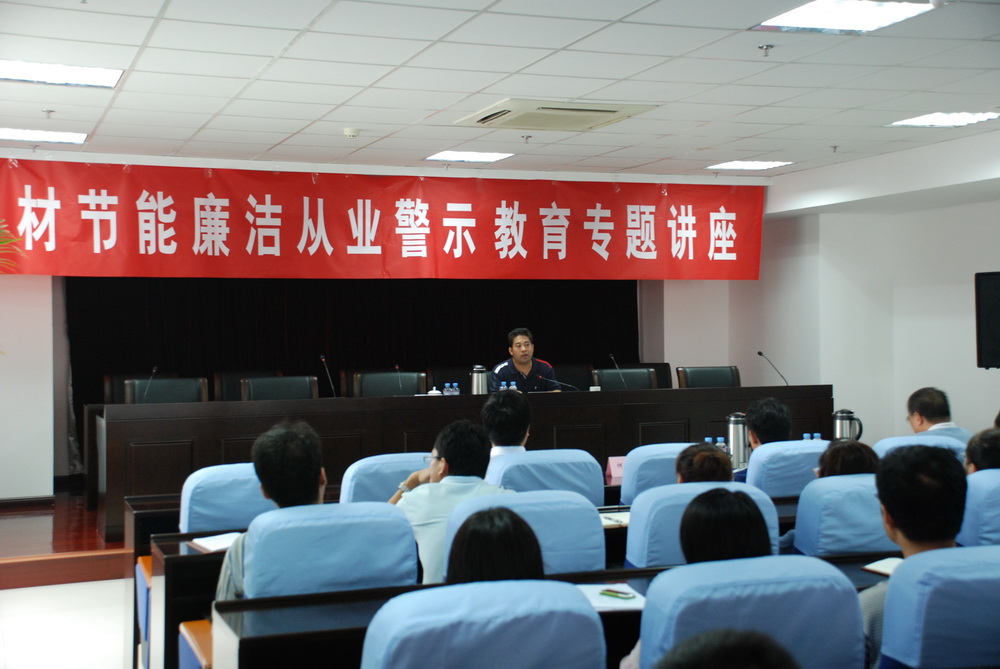 9月3日,中材節(jié)能舉辦廉潔從業(yè)警示教育專題講座,邀請(qǐng)全國(guó)十佳反貪局長(zhǎng)、天津市北辰區(qū)人民檢察院偵查監(jiān)督科科長(zhǎng)謝玉忠作專題講座。講座由公司黨委書記劉習(xí)德主持。公司總經(jīng)理何新平等在津經(jīng)營(yíng)班子成員、本部各職能部門負(fù)責(zé)人等干部職工共90余人聽取了講座。
