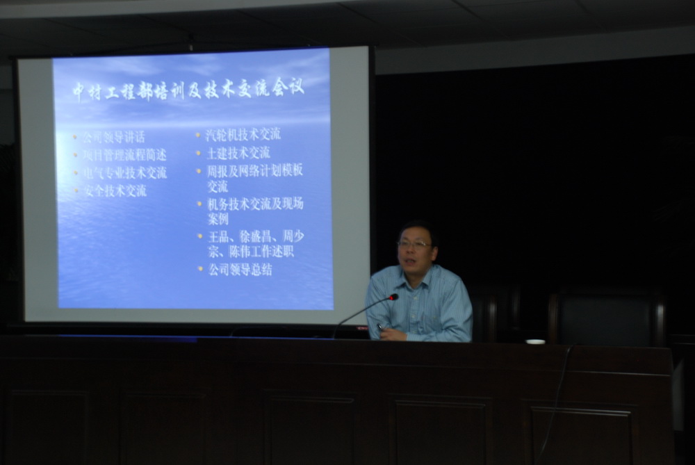 培訓(xùn)和技術(shù)交流的內(nèi)容包括七個(gè)子項(xiàng)專題:項(xiàng)目管理流程、安全管理、電氣安裝、汽輪發(fā)電機(jī)安裝、土建施工管理、機(jī)務(wù)安裝及現(xiàn)場(chǎng)施工案例、周報(bào)及網(wǎng)絡(luò)計(jì)劃模板。本次培訓(xùn)以學(xué)習(xí)、交流、互動(dòng)為主,與會(huì)人員聽講認(rèn)真,交流積極熱烈。