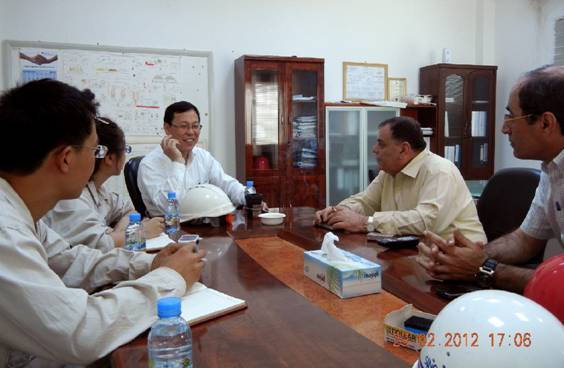 在UCC項(xiàng)目視察期間,胡總裁會見了業(yè)主總經(jīng)理Yasser先生、廠長Ibrahim先生、項(xiàng)目經(jīng)理Nasser先生,雙方在和諧友好的氣氛中對項(xiàng)目的未來發(fā)展進(jìn)行了深入細(xì)致的交談, Yasser先生高度肯定了我公司對于UCC余熱發(fā)電項(xiàng)目所作出的努力及取得的卓越成績,表示對整個工程的設(shè)計(jì)水平,設(shè)備質(zhì)量及現(xiàn)場管理都十分滿意。Yasser先生表示,在雙方的共同努力下,有信心將UCC余熱發(fā)電項(xiàng)目建成阿聯(lián)酋乃至整個中東地區(qū)的示范工程。