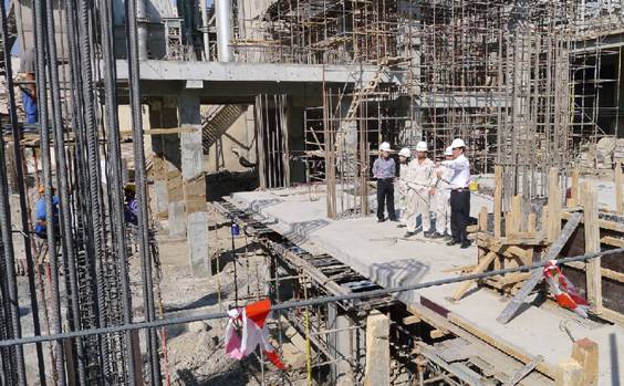 在結(jié)束了與業(yè)主的會談之后,胡總裁在項(xiàng)目部相關(guān)人員陪同下,對現(xiàn)場的每個子項(xiàng)都進(jìn)行了檢查,詳細(xì)了解了各子項(xiàng)的進(jìn)度情況、混凝土及鋼筋的質(zhì)量、施工人數(shù)及施工設(shè)備使用情況,并親自到汽輪發(fā)電機(jī)房正在施工的4.5米平面檢查工人正在綁扎的鋼筋。