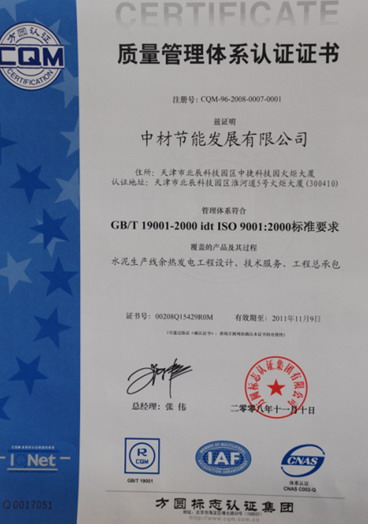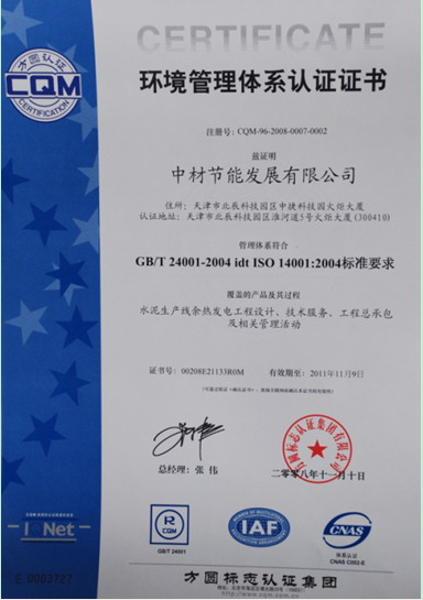近日,中材節(jié)能順利通過方圓標(biāo)志認(rèn)證集團(tuán)審核專家組對公司進(jìn)行的三項(xiàng)體系(質(zhì)量、環(huán)境及健康安全管理體系)認(rèn)證審核,取得了ISO9001:2000質(zhì)量管理體系、ISO14001:2004環(huán)境管理體系及GB/T28001-2001職業(yè)健康安全管理體系認(rèn)證證書。