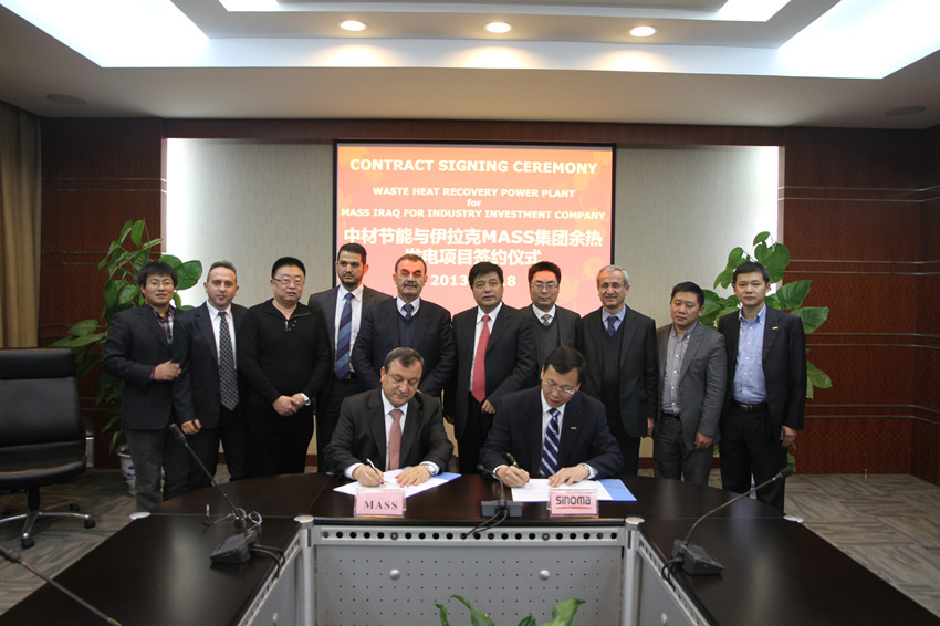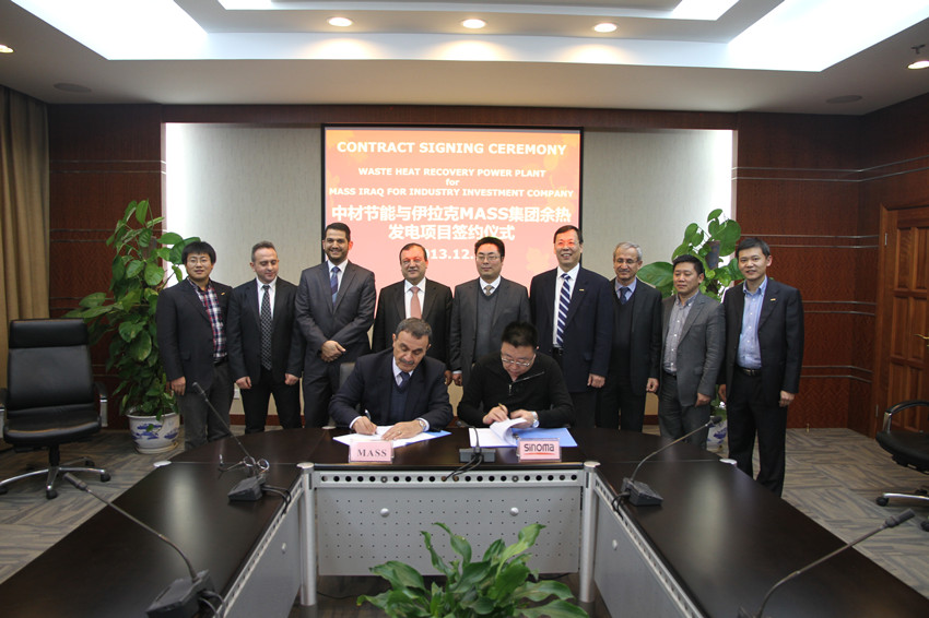 2013年12月18日,中材節(jié)能與伊拉克MASS工業(yè)投資集團(tuán)(MASS Iraq for Industry Investment Company)在昆山成功簽署了伊拉克首個水泥窯余熱發(fā)電項(xiàng)目總承包合同。這是中材節(jié)能繼在承接沙特、阿聯(lián)酋水泥窯余熱發(fā)電總承包工程之后,在中東市場上獲得的又一重要訂單。該項(xiàng)目是利用伊拉克MASS集團(tuán)旗下的SCP水泥廠3條日產(chǎn)5000噸水泥生產(chǎn)線建設(shè)的余熱發(fā)電項(xiàng)目,該項(xiàng)目總裝機(jī)規(guī)模為25MW。
