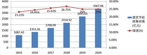 圖4:2015-2020年建筑節(jié)能市場銷售規(guī)模及增速預(yù)測
