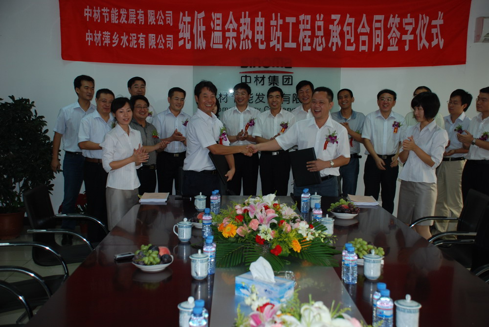 近日,中材節(jié)能與中材萍鄉(xiāng)水泥有限公司簽訂了日產(chǎn)2500噸新型干法熟料生產(chǎn)線配套4.5兆瓦余熱發(fā)電項(xiàng)目總承包合同。
