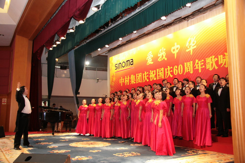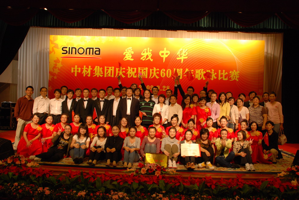 9月28日,以“愛我中華”為主題的——中材集團慶祝建國60周年歌詠比賽在北京隆重舉辦。集團領導班子和駐京津地區(qū)的14家單位共800多名員工參加并觀看了比賽及演出。
