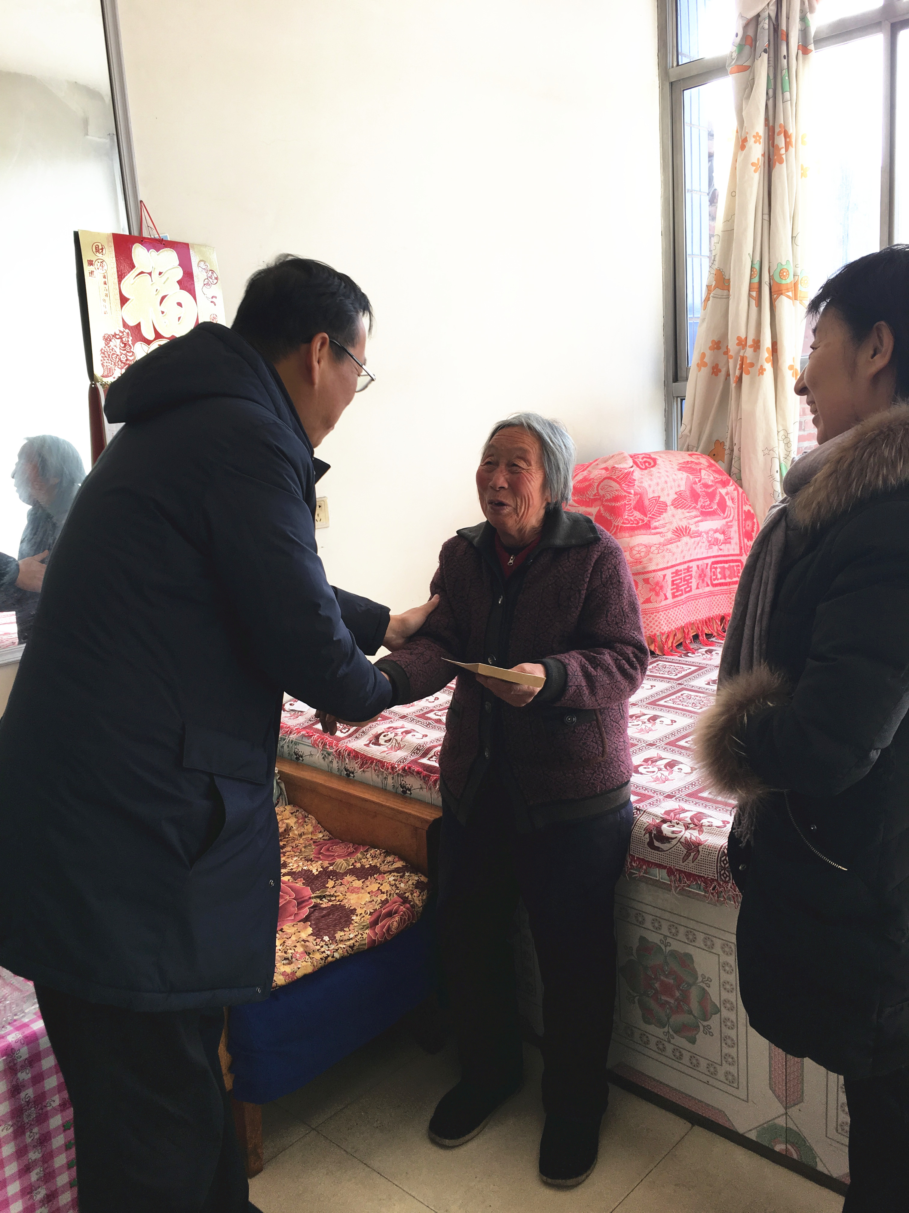 胡也明一行先后走訪了6戶困難戶,包括困難黨員、低保戶以及因病致貧的貧困戶,為他們送去了慰問品和慰問金。每到一戶,胡總和楊書記都會(huì)親切地與困難戶鄉(xiāng)們噓寒問暖,詳細(xì)詢問他們的家庭生活、身體狀況等情況,鼓勵(lì)他們在政府政策支持和企業(yè)的幫助下,堅(jiān)定勇氣,自力更生,努力戰(zhàn)勝疾病和生活困難,祝愿他們過個(gè)快樂的春節(jié)。