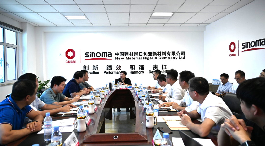 Recently, Wang Yumeng, Vice President of China National Building Material Group (CNBM), conducted an on-site inspection of safety production and security measures at New Material Nigeria Company Ltd, a subsidiary of Sinoma Energy Conservation Limited. Accompanying him were Li Ning, General Manager of CNBM’s Safety & Environmental Protection Department; Zhang Jinshu, Deputy General Manager of the Strategy Development (International Cooperation) Department; Liu Xin, President of Sinoma Energy Conservation Limited; and Liu Renyue, Executive Vice President of Sinoma International Engineering Co., Ltd.